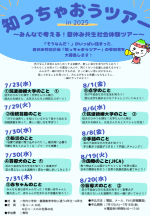 「知っちゃおうツアー」とは、市内の小学4~6年生向けに、様々な福祉課題について興味があるテーマを学べる夏休みの特別講座です。