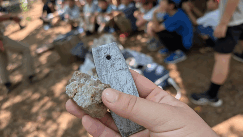 子どもたちは実際に木にチョップしてみて「切れね~!」と盛り上がっていたり、「石炭じゃなくて木炭!」など我々が未履修の部分でゲームとの違いを発見していたり、火打石で火をつけるのはすっごく難しいと現実に打ちひしがれたりして、ゲームの知識とリアルの体験を頭と体を使って繋げていました(めちゃくちゃ良い体験!)。